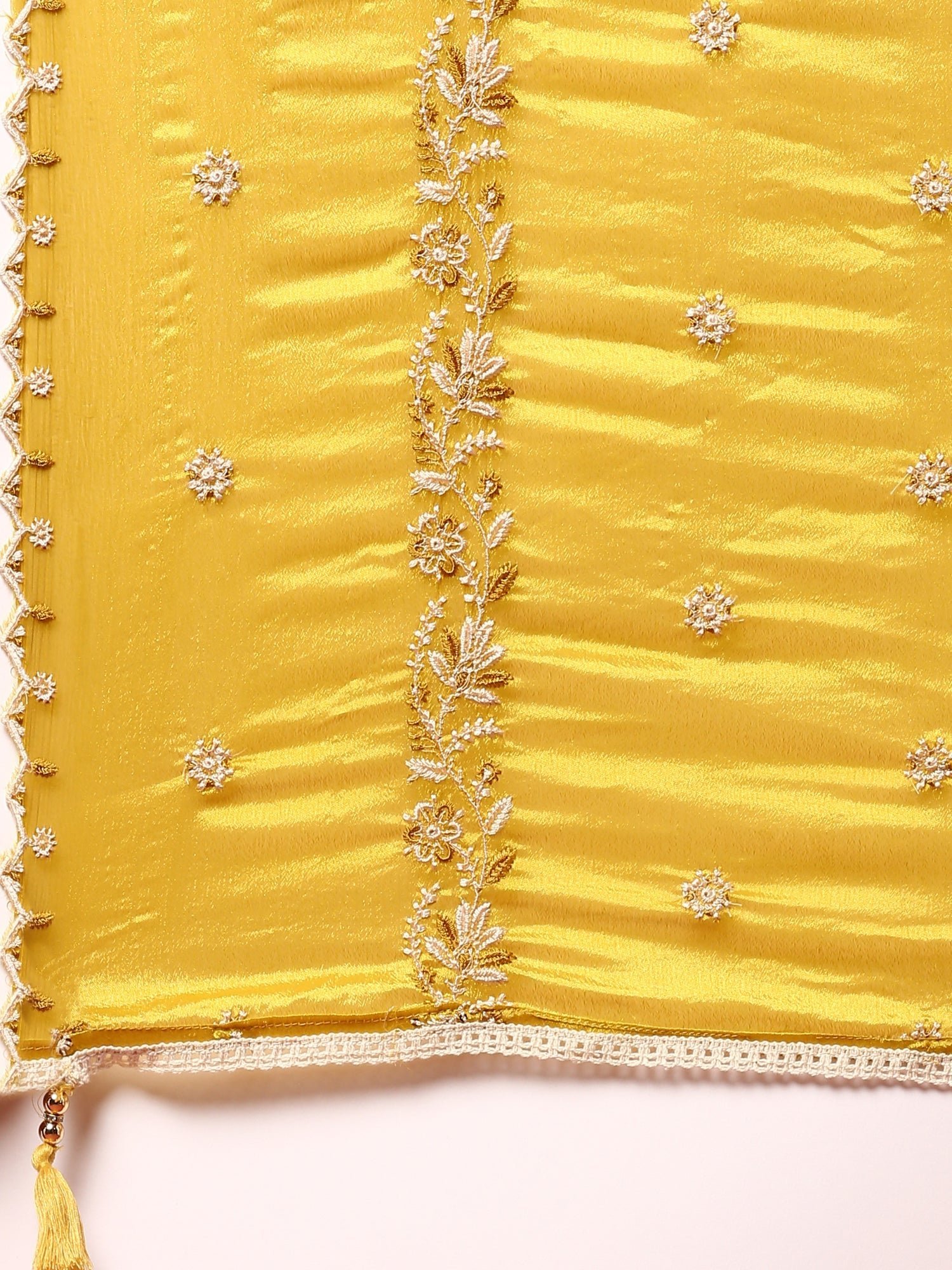 This green muslin three-piece suit set features intricate heavy embroidery, combining traditional craftsmanship with elegant design. Crafted from breathable muslin fabric, it ensures comfort for extended wear while showcasing detailed embellishments that add a rich, sophisticated look. Ideal for festive occasions and formal gatherings, this set offers a harmonious balance of style and comfort.
