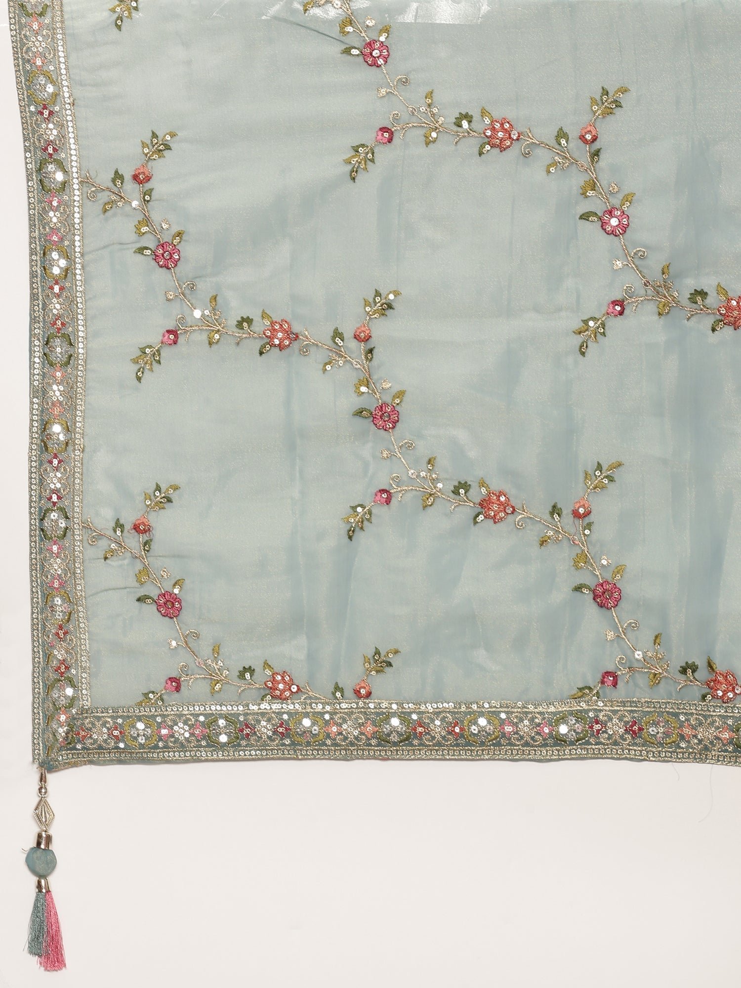 Elevate your traditional wardrobe with the Rama Tissue Silk Ghagra Set, exquisitely crafted with intricate embroidery. This set blends luxurious tissue silk fabric with delicate craftsmanship, offering a graceful silhouette that enhances your elegance for special occasions. Perfect for festive celebrations or weddings, it promises both comfort and timeless style.