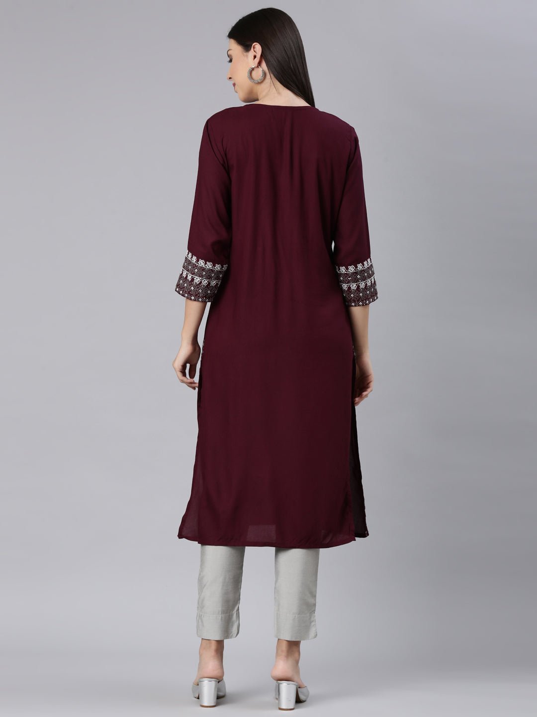 Transacthubs Maroon Straight Casual Solid Straight Kurtas It’s a versatile, must-have piece for any wardrobe.