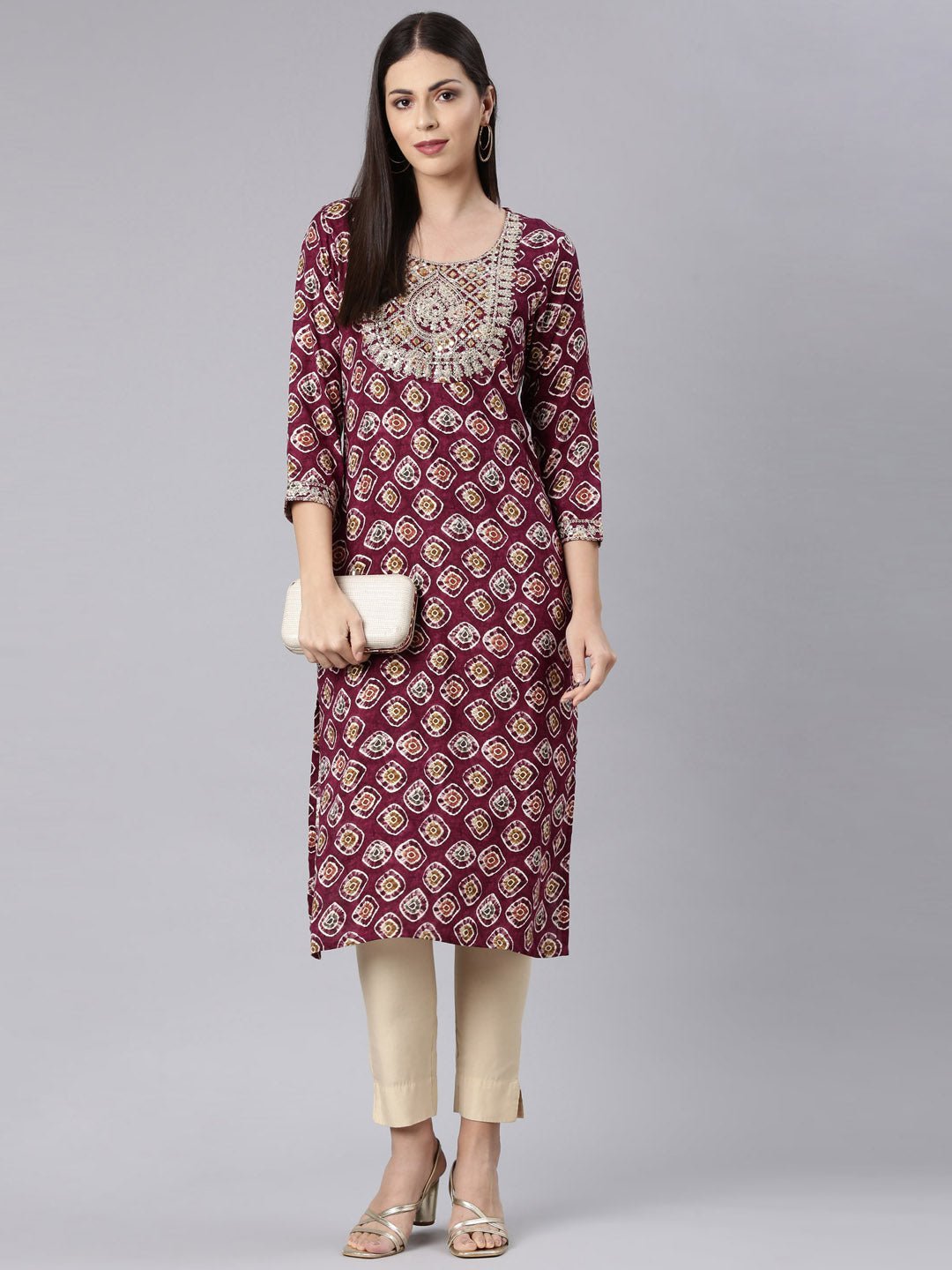 Transacthubs Purple Straight Casual Embellished Straight Kurtas Simple clothing with intricate designs. Stand out with elegance in these straight kurtas suitable for any casual occasion.